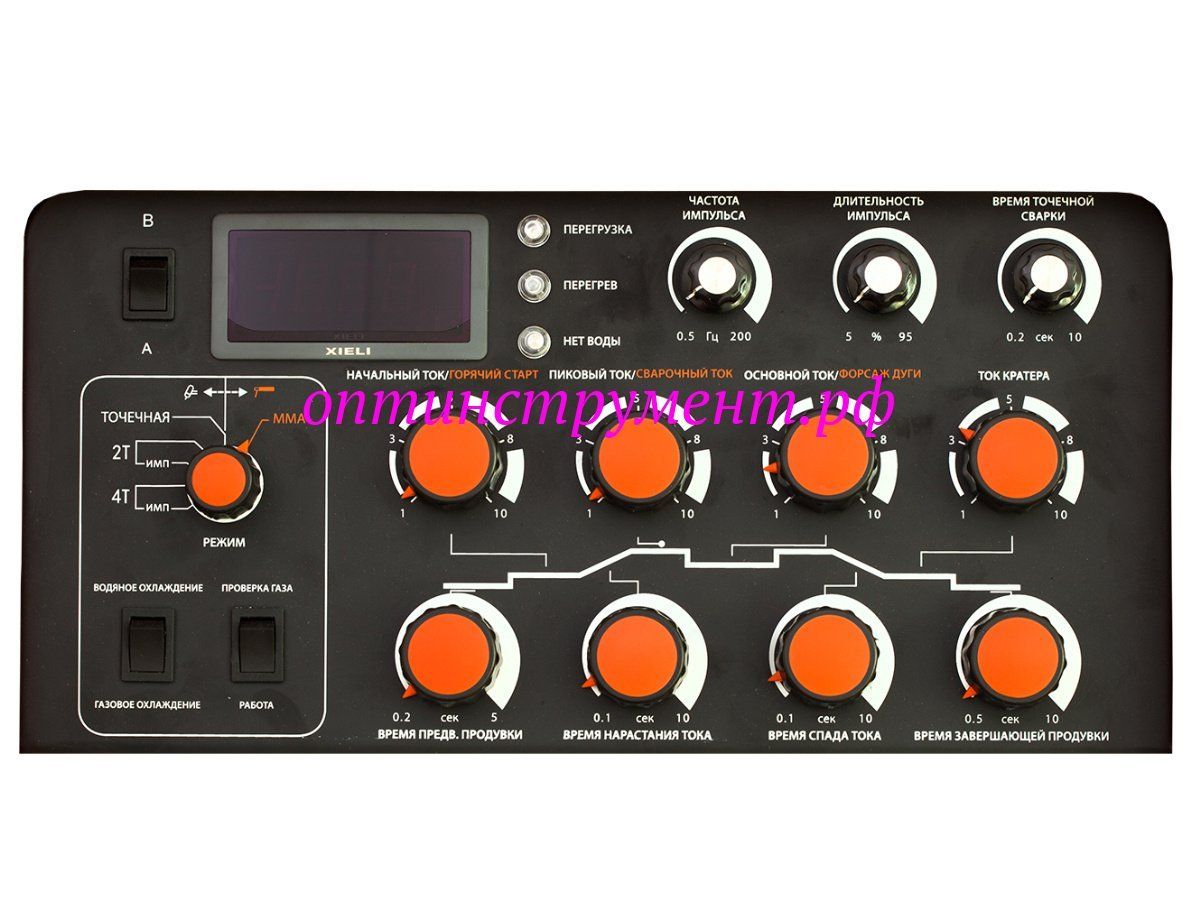 Аппарат серии STANDART TIG 500 P (W302) - промышленный сварочный инвертор для аргонодуговой сварки (TIG) с режимом импульсной сварки, ручной дуговой сварки покрытым электродом (ММА), оборудован цифровыми индикаторами параметров сварки и большим набором ручных регулировок.