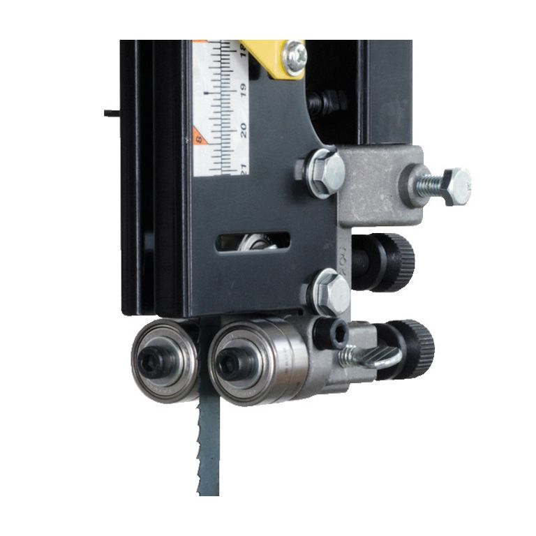 Особое внимание уделено удобству эксплуатации и настройки: за процесс натяжение / ослабление полотна отвечает отдельный рычаг, установка высоты пропила производится реечным механизмом с вращающимся «барашком», фиксатор параллельного упора эксцентрикового типа одновременно обеспечивает точность и скорость установки. Пильную ленту сверху и снизу поддерживают трехроликовые опоры на подшипниках. Такой вариант обеспечивает умеренно-жесткую фиксацию и отличается надежностью и простотой регулировки.