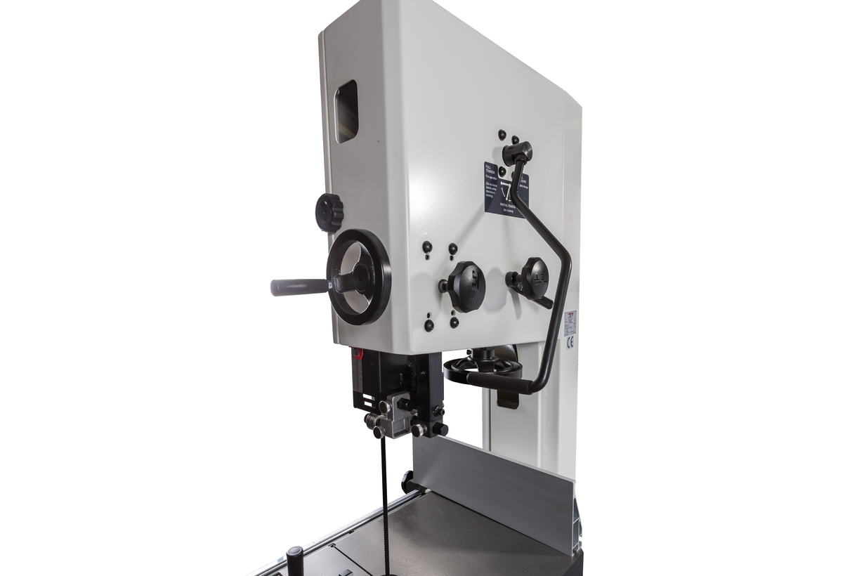 Jet JWBS-15 - ленточная пила нового поколения, предназначенная для профессионального использования. Ее основное преимущество, на фоне аналогов прошлых поколений, - увеличенная высота распиловки. Этот параметр очень важен для тех, кому нужен универсальный станок, способный взять на себя функции делительного. К подобным работам приспособлен и параллельный упор: направляющий профиль можно установить вертикально на боковую грань так, чтобы надежно фиксировать плоские заготовки при их роспуске на тонкие пластины. В целом конструкция бокового упора очень хорошо проработана и соответствует самым строгим требованиям: профиль жесткий и прочный, закреплен на массивном чугунном кронштейне, который перемещается по цилиндрической направляющей. Предусмотрена грубая (вручную) и точная (микрометрическим винтом) установка.