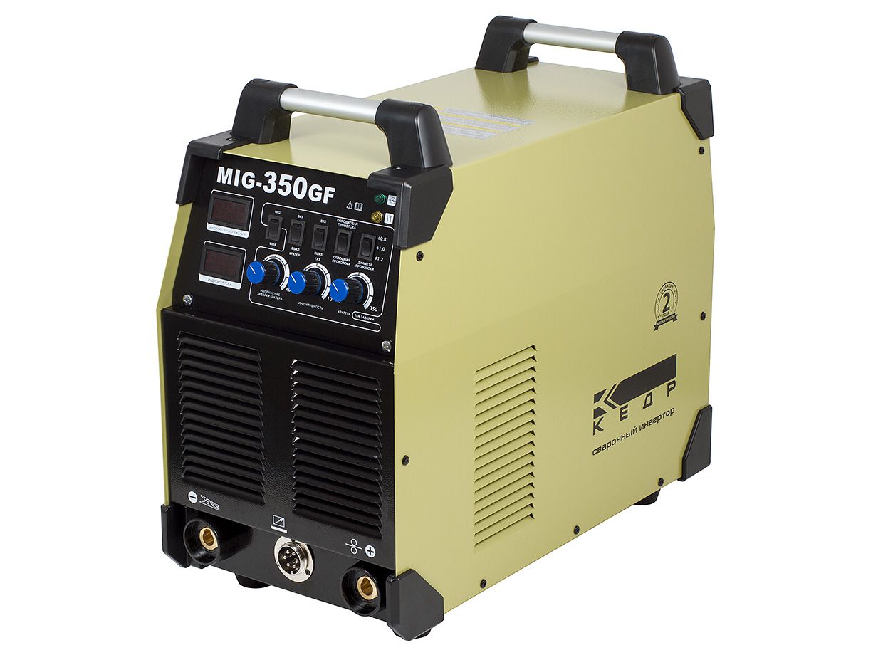 Сварочный источник КЕДР MIG-350GF максимально производительный аппарат. Служит для полуавтоматической сварки в условиях защитного газа MIG/MAG и для полноценной качественной ручной дуговой сварки штучным электродом MMA.