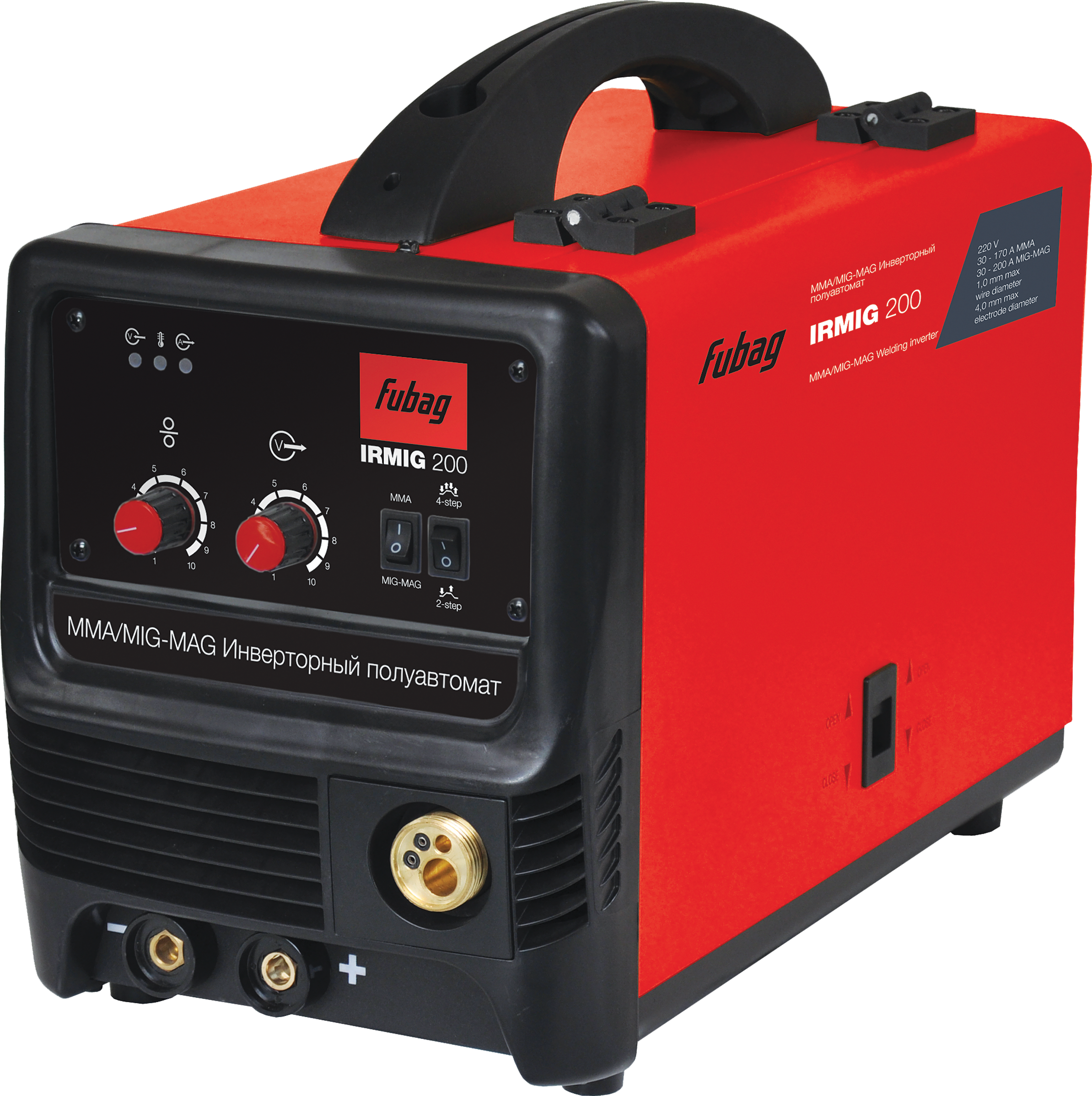 Универсальный сварочный полуавтомат IRMIG 200 предназначен для работы методом MIG/MAG-сварки и ММА-сварки. Имеет плавную регулировку сварочного тока и способен работать проволокой диаметром 0,6-1,0 мм. Евроразъем позволяет работать со съемными горелками. Это отличное решение как для автосервисов, так и для предприятий. Аппарат комплектуется полным набором аксессуаров.