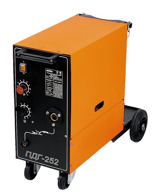 Сварочный полуавтомат ПДГ-252 однокорпусный (с подающим механизмом) для сварки малоуглеродистых, низколегированных сталей в защитных газах на постоянном токе. Конструкция полуавтомата выполнена в одном корпусе и состоит из источника питания и встроенного подающего механизма.