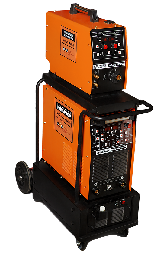STANDART MIG 500 P DSP (J77) — универсальный инверторный полуавтомат с возможностью сварки в импульсном режиме MIG/MAG/TIG, точечной сварки (SPOT), также для ручной дуговой сварки покрытым электродом (MMA).