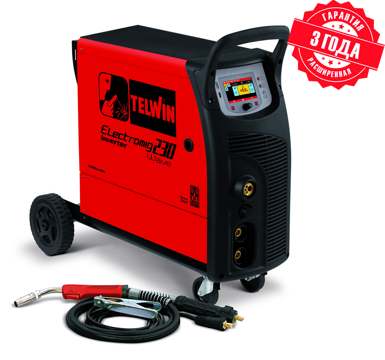 Многофункциональный сварочный полуавтомат ELECTROMIG 230 WAVE 400V - предназначен для полуавтоматической сварки (MIG-MAG), порошковой проволокой без газа, аргоно-дуговой сварки (TIG), а так же ручной дуговой сварки (ММА) с синергетический управлением.