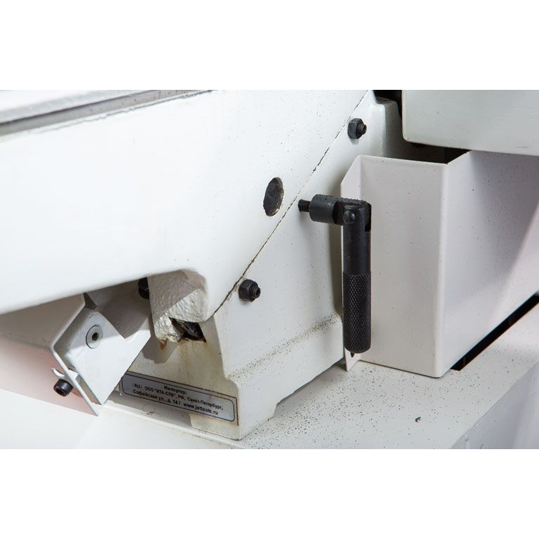 Конструктивно он состоит из двух частей. В нижней, играющей роль тумбы-подставки, располагается однофазный асинхронный («индукционный») мотор мощностью немного более киловатта и кожух сбора стружки со 100-миллиметровым патрубком для подключения к вытяжной установке. Верхняя часть состоит из чугунного основания, где размещен строгальный вал, и чугунных же рабочих столов с соответствующим оснащением, состоящим из защитного кожуха и упора заготовки. Оба стола регулируются по высоте при помощи винтовых механизмов, приводимых в действие ручками-маховиками. Перемещением подающего (переднего) стола регулируют глубину строгания, для чего есть соответствующая разметка; принимающий (задний) смещают только при наладочных операциях во время обслуживания станка.