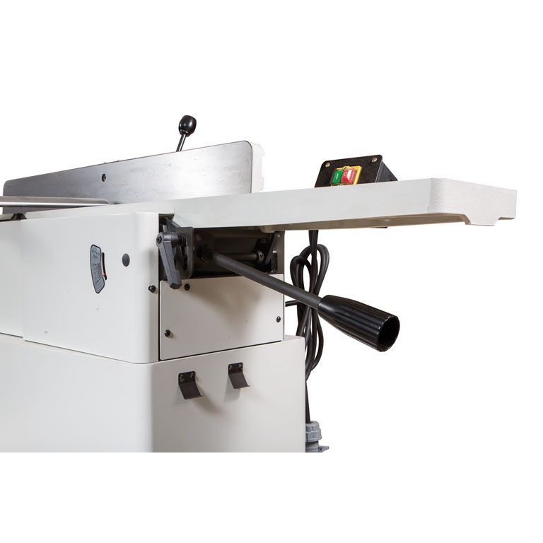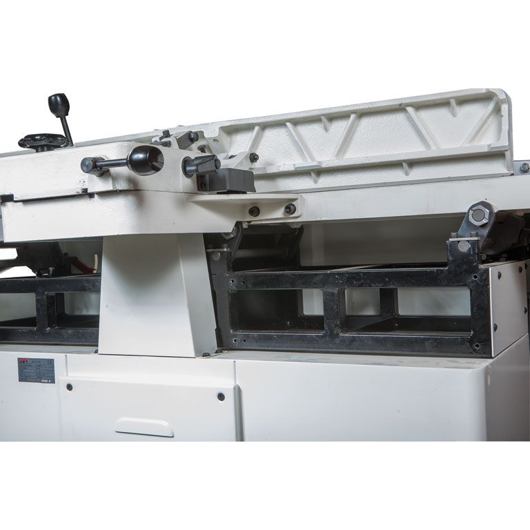JJ-866 новый фуговальный станок Jet профессионального класса с шириной строгания 200 мм, оборудован длинными массивными чугунными столами. Может в качестве опции комплектоваться строгальным валом helical, который незаменим при работе с твердыми породами, по древесине с сучками и просто при интенсивной эксплуатации.