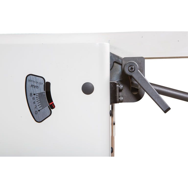 Отличительная особенность новинки – параллелограммный механизм регулировки высоты столов. В сегменте компактного оборудования такая схема получила распространение сравнительно недавно и пока еще более характерна для тяжелого промышленного оборудования. Вместо наклонных скользящих направляющих в ней используются рычаги на осях, нет ни винтов, ни эксцентриков, а усилие от рукоятки прикладывается непосредственно на сторону параллелограмма. Внутреннее трение и люфты в такой конструкции минимальны, что позволяет при настройке перемещать тяжелые столы (регулируются оба: и приемный, и разгрузочный) с наименьшими усилиями и максимально точно.