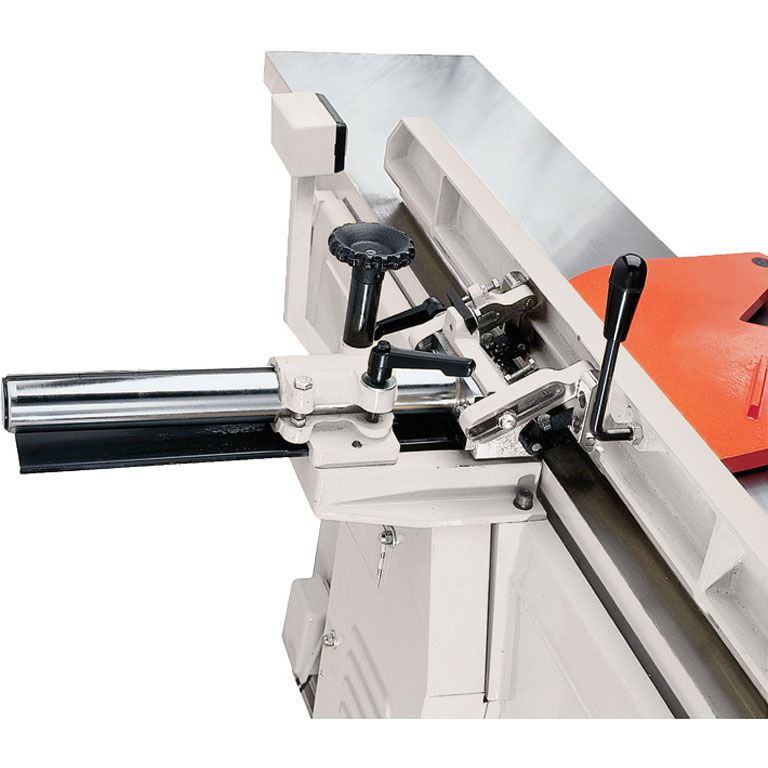 При переходе с одного вала на другой, при замене ножей и в других случаях может потребоваться корректировка положения принимающего стола, такая возможность предусмотрена конструкцией. Есть отдельный стол сбоку от основного, предназначенный для выборки четверти глубиной до 19 мм. Регулируемый по наклону и вылету массивный фуговальный упор с простой регулировкой ограничителя угла установки, удобное поворотное ограждение строгального вала, 140-миллиметровый вытяжной штуцер – все эти особенности также характеризуют Jet PJ-1696 как производительный профессиональный станок, подходящий для промышленного применения.