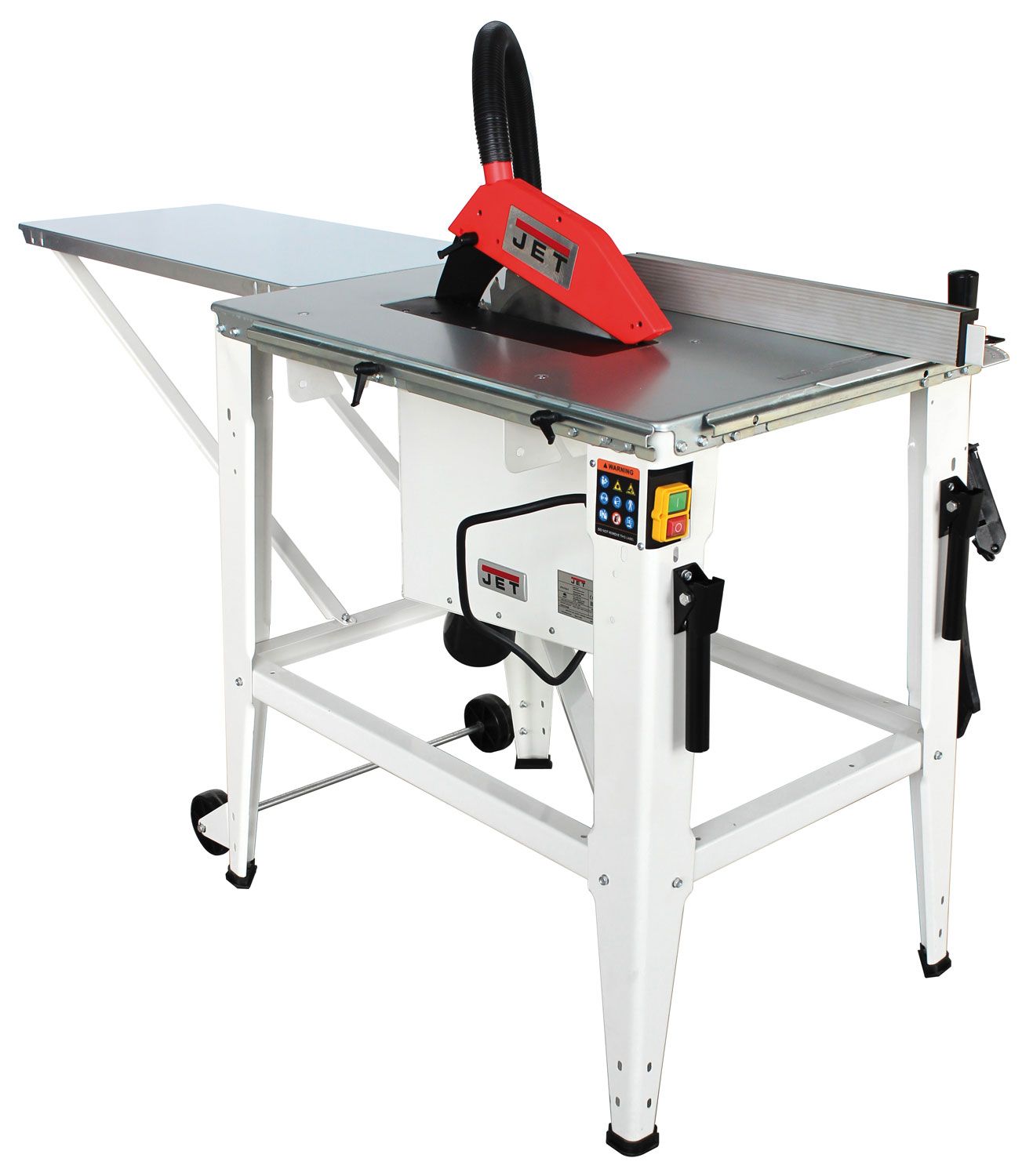 Важное достоинство JTS-315LA — большая (при установленном удлинителе 1650 мм) суммарная длина рабочих столов, позволяющая уверенно работать с длинными заготовками. Высокая мобильность (для транспортировки есть колеса и рукоятки) и достаточная мощность в сочетании с однофазным подключением позволяют рекомендовать эту пилу как для использования при строительстве, так и в качестве универсального циркулярного станка для мастерской. В последнем случае будет важно наличие полноценной системы пылеотсоса с разветвителем и забором опилок сверху и снизу диска.